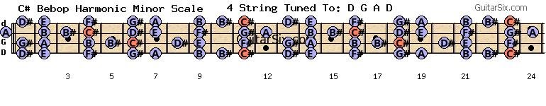 d-a-d-g-a-d c# bebop harmonic minor scale for guitar
