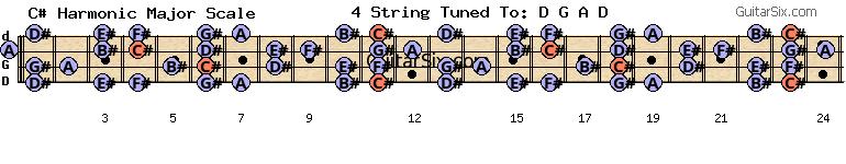 d-a-d-g-a-d c# harmonic major scale for guitar