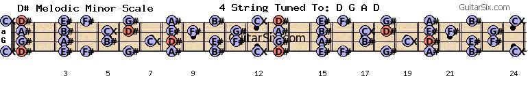 d-a-d-g-a-d d# melodic minor scale for guitar