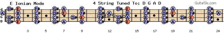 d-a-d-g-a-d e e ionian mode for guitar