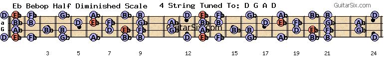 d-a-d-g-a-d eb bebop half diminished scale for guitar