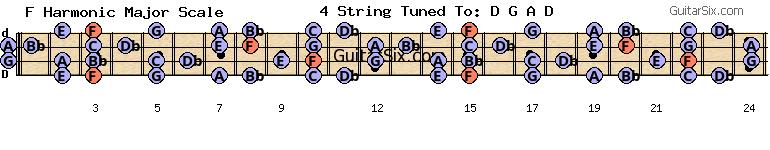 d-a-d-g-a-d f harmonic major scale for guitar