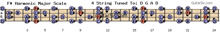 d-a-d-g-a-d f# harmonic major scale for guitar