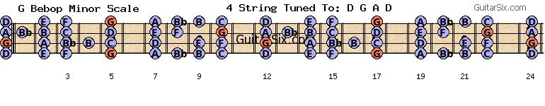 d-a-d-g-a-d g bebop minor scale for guitar