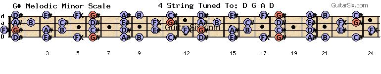 d-a-d-g-a-d g# melodic minor scale for guitar