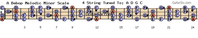 e-a-a-d-g-c a bebop melodic minor scale for guitar