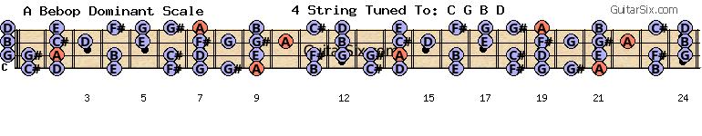 e-a-c-g-b-d a bebop dominant scale for guitar