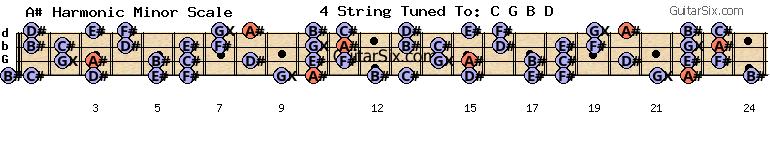 e-a-c-g-b-d a# harmonic minor scale for guitar