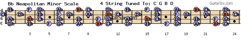 e-a-c-g-b-d bb neapolitan minor scale for guitar