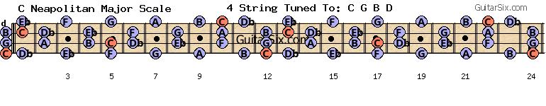 e-a-c-g-b-d c neapolitan major scale for guitar