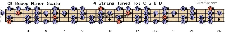 e-a-c-g-b-d c# bebop minor scale for guitar