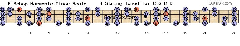 e-a-c-g-b-d e bebop harmonic minor scale for guitar