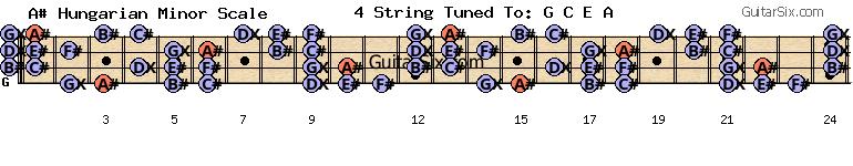 e-a-g-c-e-a a# hungarian minor scale for guitar