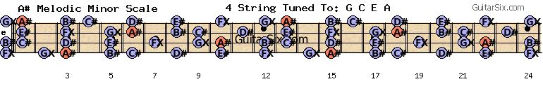 e-a-g-c-e-a a# melodic minor scale for guitar