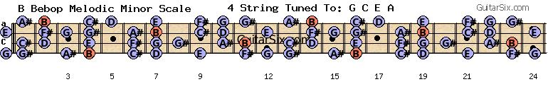 e-a-g-c-e-a b bebop melodic minor scale for guitar