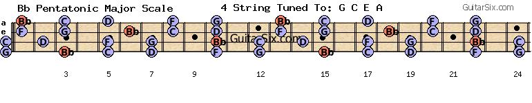 e-a-g-c-e-a bb pentatonic major scale for guitar