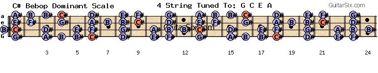 e-a-g-c-e-a c# bebop dominant scale for guitar