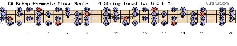 e-a-g-c-e-a c# bebop harmonic minor scale for guitar