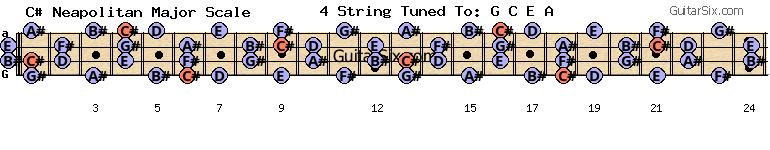 e-a-g-c-e-a c# neapolitan major scale for guitar