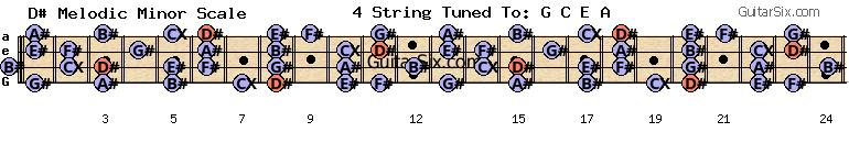 e-a-g-c-e-a d# melodic minor scale for guitar