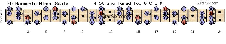 e-a-g-c-e-a eb harmonic minor scale for guitar