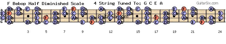 e-a-g-c-e-a f bebop half diminished scale for guitar