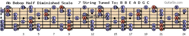b-e-a-d-g-c ab bebop half diminished scale for guitar