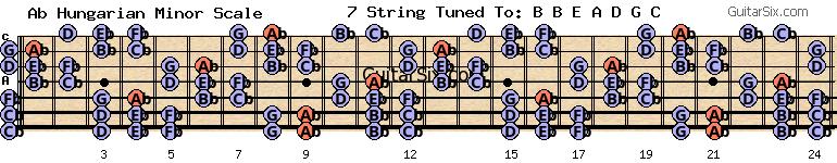 b-e-a-d-g-c ab hungarian minor scale for guitar