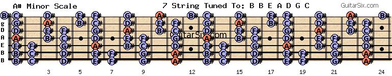 b-e-a-d-g-c a# minor scale for guitar