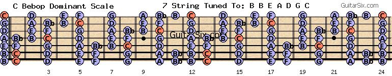 b-e-a-d-g-c c bebop dominant scale for guitar