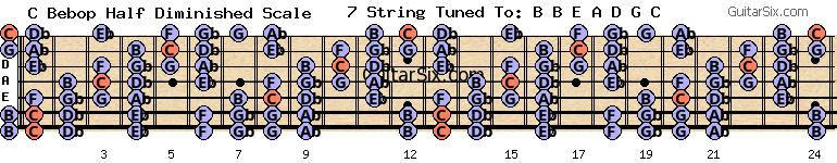 b-e-a-d-g-c c bebop half diminished scale for guitar
