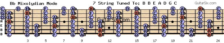 b-e-a-d-g-c eb bb mixolydian mode for guitar