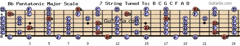 c-g-c-f-a-d bb pentatonic major scale for guitar