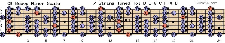 c-g-c-f-a-d c# bebop minor scale for guitar