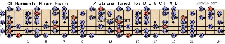 c-g-c-f-a-d c# harmonic minor scale for guitar