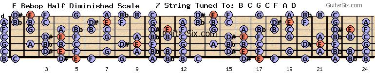 c-g-c-f-a-d e bebop half diminished scale for guitar