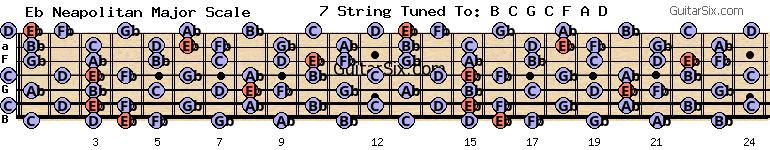 c-g-c-f-a-d eb neapolitan major scale for guitar