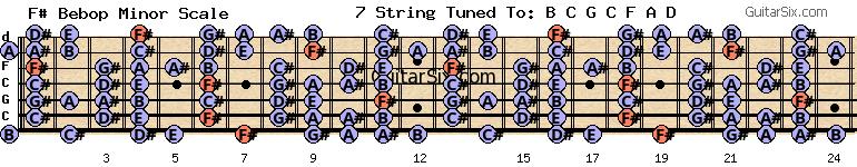 c-g-c-f-a-d f# bebop minor scale for guitar