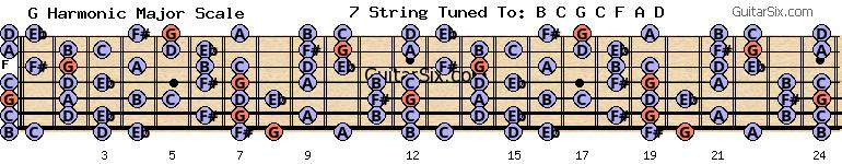 c-g-c-f-a-d g harmonic major scale for guitar