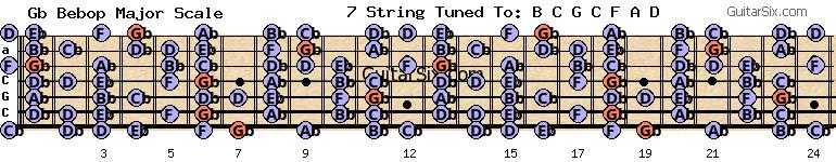 c-g-c-f-a-d gb bebop major scale for guitar