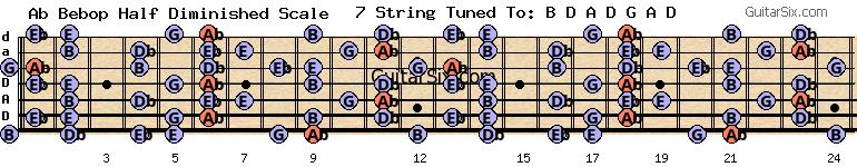 d-a-d-g-a-d ab bebop half diminished scale for guitar