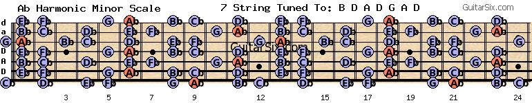 d-a-d-g-a-d ab harmonic minor scale for guitar