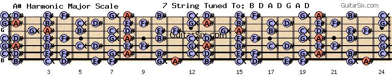 d-a-d-g-a-d a# harmonic major scale for guitar