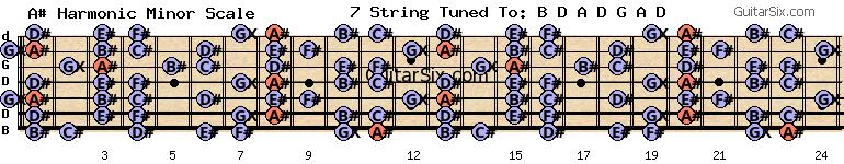 d-a-d-g-a-d a# harmonic minor scale for guitar