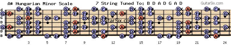 d-a-d-g-a-d a# hungarian minor scale for guitar