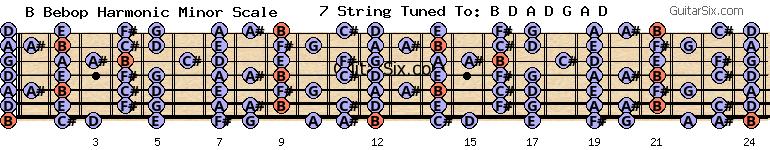 d-a-d-g-a-d b bebop harmonic minor scale for guitar