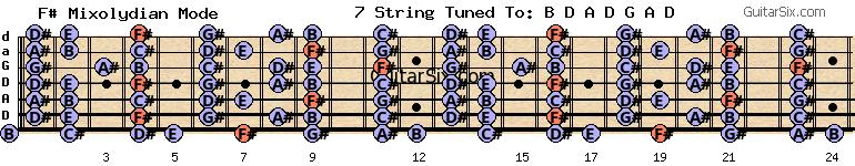 d-a-d-g-a-d b f# mixolydian mode for guitar