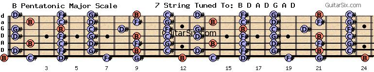 d-a-d-g-a-d b pentatonic major scale for guitar