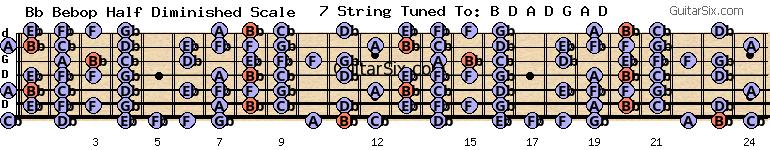 d-a-d-g-a-d bb bebop half diminished scale for guitar