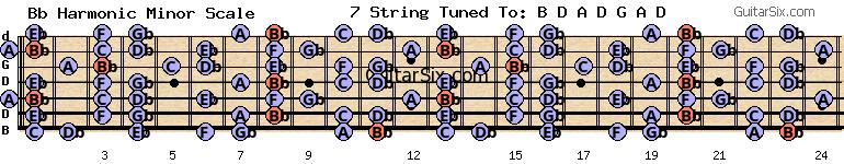 d-a-d-g-a-d bb harmonic minor scale for guitar